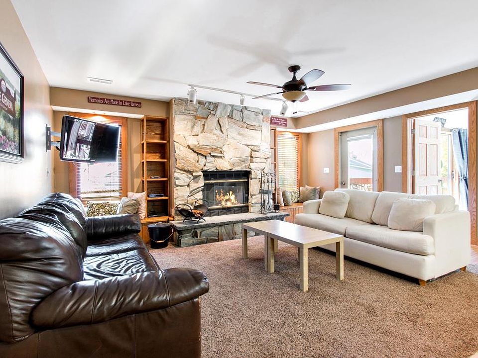 Light and bright 2 bdrm condo in Lake Geneva with outdoor pool. Open concept floor plan is the perfect Lake Geneva get-away. Balcony to enjoy the outdoors. Beautiful stone wood burning fireplace. Huge kitchen counter area is set up for entertaining. Updated bathroom with in-unit laundry space. Attached garage with access inside the building. New laminate wood-look floors, new carpet, new furnace. Walking distance to town and the lake, large outdoor pool, open and airy floor plan, all at an affordable price!