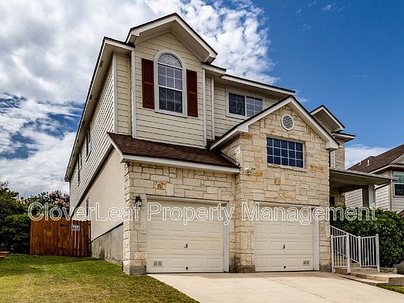 Low Deposit Option*. Gated community. Spacious 4-bedroom, 2.5-bath home located in the gated Panther Creek at Stone Oak community. Offering over 3,400 sq ft of thoughtfully designed space, this home features a large upstairs primary suite with dual walk-in closets, a spa-like bath with soaking tub, and separate vanities. Downstairs, enjoy hardwood floors, a cozy fireplace, and a chef's kitchen with granite countertops, stainless steel appliances, an island, and a reverse osmosis sink for purified water. The home is equipped with built-in surround sound speakers both upstairs and downstairs, perfect for immersive movie nights or entertaining guests. A spacious game/media room adds even more versatility. Step outside to a private backyard with a large deck, canopy, ceiling fans, and mature fruit trees. Community amenities include a pool, tennis and basketball courts, and a clubhouseall in a desirable NEISD school zone.$35 mo. Fee in Lieu of Dep*.