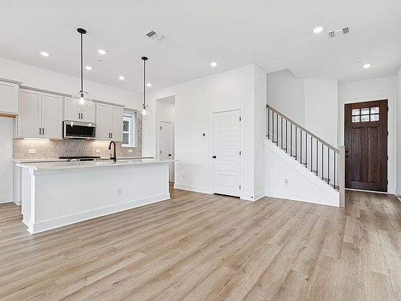 Welcome to your beautiful new home in Double Creek Crossing! The Fawn by David Weekley Homes is an exceptional three-story home offering a perfect blend of modern design and functionality. With 4 spacious bedrooms and 3.5 baths, this home is ideal for families looking for comfort and style. Step inside to discover a thoughtfully designed layout featuring upgraded 42-inch cabinetry, adding both beauty and practicality to the kitchen. The sleek black hardware throughout complements the home’s contemporary aesthetic, while the inviting covered backyard porch is perfect for relaxing or entertaining. The Owner’s Retreat offers a peaceful sanctuary with a luxurious tray ceiling, creating a spacious and serene atmosphere. Plus, with a convenient backpack rack at the entry from garage, the home is both stylish and functional. Located in the sought-after Double Creek Crossing community, this home provides easy access to excellent schools, shopping, dining, and outdoor recreation. Contact the David Weekley Homes at Double Creek Crossing Team to tour of this new home for sale in Round Rock, Texas! Our EnergySaver™ Homes offer peace of mind knowing your new home in Round Rock is minimizing your environmental footprint while saving energy. Square Footage is an estimate only; actual construction may vary.