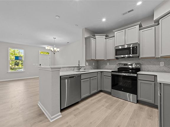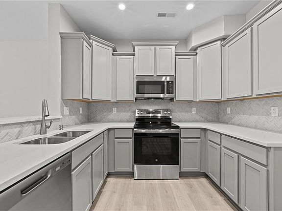 The Champlain -end unit townhome with rear load garage near the vibrant Coliseum Central area. 3 floors of luxury living w/3 bedroom, 2.5 baths. The kitchen features upgraded cabinets w/soft close doors/drawers, quartz countertops, tile backsplash, stainless steel appliances & LVP flooring on the 1st level. The 2nd level has 2 secondary bedrooms, full bath and large laundry room. Primary bedroom w/ensuite bath encompasses the entire 3rd level. Bedroom has large closet & has lots of natural lighting. A spa like bath with large tile shower, separate garden tub, dual vanities and water closet. Enjoy community clubhouse, fitness center & pool in your spare time. This community as a Cox Communication package to include HS internet, cable @$67.20/month. Condo is VA, Conv. approved. No FHA loans accepted.
