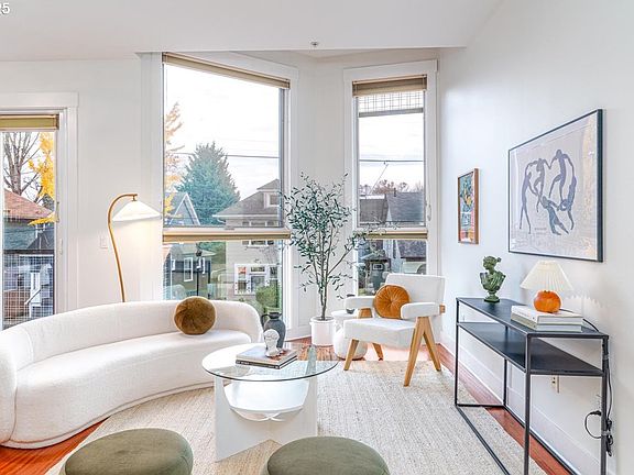 This condo is seriously cool — bright, modern, and right in the heart of Belmont/Hawthorne! Floor-to-ceiling, south-facing windows flood the high-ceilinged space with natural light year-round. The smart floor plan features 1 bedroom, 2 full baths, a balcony, a primary ensuite, and a separate den/office. Fresh paint, new carpet, and beautiful engineered wood floors make it completely move-in ready. Radiant floor heat is quiet, warm, and effortless — just set it and forget it. Enjoy central AC, deeded gated parking, bike storage, and an additional storage unit. Elevator access, wide hallways, minimal steps, and in-unit laundry add to the convenience.Located just blocks from H Mart, Fred Meyer, Laurelhurst Park, Belmont Library (gorgeous renovation, reopening next summer), and endless great restaurants, shops, and transit — it’s all right outside your door. The well-run HOA covers almost everything (gas, water, heat, sewer, trash, exterior maintenance, and management), plus it’s pet-friendly with no rental cap. True city living — stylish, easy, and fun!
