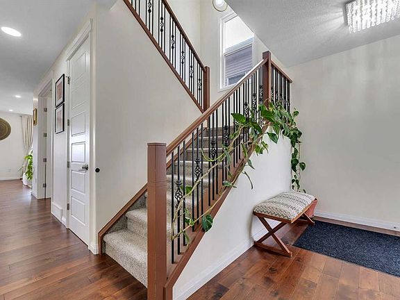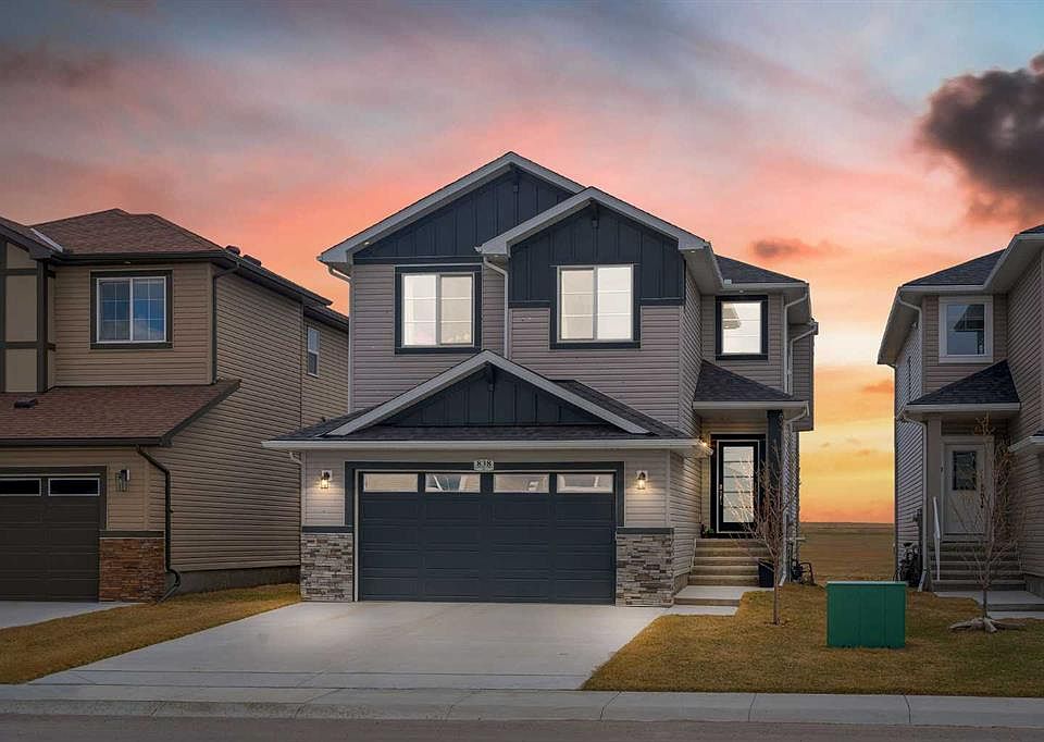 Welcome to this stunning home at 838 Edgefield Street, Strathmore. Boasting over 2,400 sq ft of luxury living, this bright and open plan features 8-foot doors, rounded wall corners, and 3-pane high-efficiency windows throughout. On the main floor, discover a spacious Office/Den ideal for working from home, and a gourmet kitchen upgraded with a gas stove, fridge, range hood, and gleaming granite countertops. The kitchen, living and dining areas flow seamlessly over rich engineered hardwood, accented by custom moldings, upgraded baseboards, mirrored coat-closet doors, and designer light fixtures. Upstairs, the generous primary suite is joined by three additional bedrooms, a bonus room, and two full baths—each appointed with granite counters. A convenient laundry room with sink adds everyday ease. Additional highlights - Custom stair railing & upgraded main entrance door, Wider double garage for extra storage or workspace, Unfinished walkout basement ready for your personal touch. Located just a short walk to George Freeman School and with easy access to Highway 1, this home is close to all major amenities including Walmart, Sobeys, RONA, and many more shopping and grocery options. Don't miss the opportunity to own this beautiful home in the growing community of Edgefield, Strathmore!