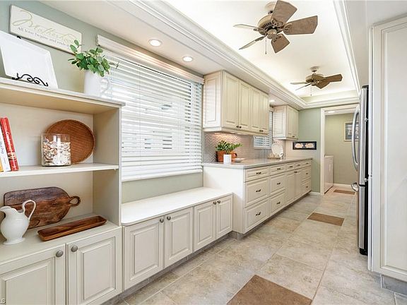 Welcome to Bayside Club on Marco Island, where waterfront elegance meets island tranquility. This beautifully updated 2 bedroom, 2.5 bathroom residence offers a seamless blend of comfort and luxury, complete with stunning views of Smokehouse Bay from every room. Watch dolphins play in the bay as you sip your morning coffee, and enjoy breathtaking western-exposure sunsets over the wide bay waters. The thoughtfully redesigned kitchen is a chef’s dream. From the custom cabinetry to the stylish stainless steel backsplash and appliances, this kitchen offers ample storage and counter space to delight every chef. The kitchen also features undercabinet lighting, a lighted tray ceiling, crown molding, and is adjacent to the laundry room offering even more storage. The large great room and dining area are perfect for entertaining or for quiet evenings watching the sunset. Two generous bedrooms, each with its own walk in closet and redesigned bath, offer plenty of space and privacy for visiting guests. There is also a convenient half bath off the foyer. A huge lanai, accessed from the living room and BOTH bedrooms is a wonderful place to sip iced tea and enjoy boats passing by. In addition to the many closets, there is walk in storage just outside the condo and another locked storage room on the ground floor, ensuring everything has its place. This home also has impact glass windows in the kitchen and bath and electric storm shutters on the lanai for peace of mind. Step outdoors to find your own slice of paradise—complete with a sparkling-heated pool and spa overlooking the bay, a Tiki Hut perfect for entertaining, and boat dockage for easy access to open water adventures in the Gulf. Whether you’re an avid boater, nature lover, or simply someone who appreciates the laid-back rhythm of island living, this home has something for everyone. Enjoy a morning of round of tennis or pickleball, then stroll to the nearby Esplanade Shoppes for world-class dining, boutique shopping, and waterfront cafes that add a lively flair to your relaxing days. This is more than a home—it's a lifestyle. Schedule your visit today and begin your island adventure tomorrow!