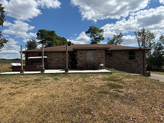 3 bed, 2 bath ranch styled brick home with a single car attached garage, paved driveway, new back patio, 2 car top and bottom detached garage, and another steel building in the back yard. The home sits in a little bit over one acre of land, and has an in-ground electric fence wire already installed.