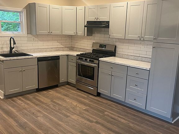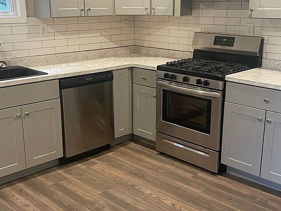 Beautiful open kitchen with new grey cabinetry, new stainless steel appliances, extra full bathroom in lower level