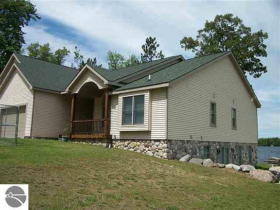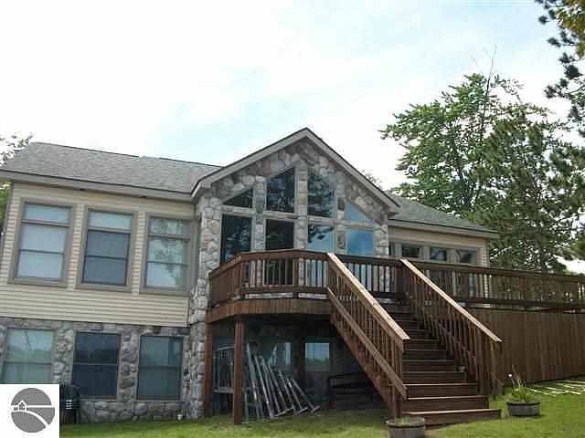 Although you may have boated by this one, you cant tell a book by its cover! Although the cover is beautiful! from incredible 100 ft sandy frontage x wooded 400 ft deep lot, with treed private entrance, Maint free vinyl and stone exterior! Main floor master suite with lake view! 2 more bedrooms, and 1 .5 baths! on main level and Two sided stone fireplace, in kitchen and liv room! great views from spacious live rm and kitchen ! island and tons of storage! all the amenities! you'd expect in this custom built show place! wood floors , tile, carpet ! Huge wrap around deck! to while away the hours reading, coffee in the morning! go to the lower walk out level for an area currently being used as a huge family room, another kitchen, 2 brs and bath! another whole house! utility room! windows galore looking at the lake! sliding door to cement patio at lake level! attached 3 car garage! there is just too much to see in this newer custom built home! Priced to sell, schedule showing of this beauty on all sports long lake! It is located on the widest part of this beautiful all sports! lake!And now converted to natural gas for huge $$ savings!! new furnace, new hot water heater! even double sided gas fireplace burns nat gas now!