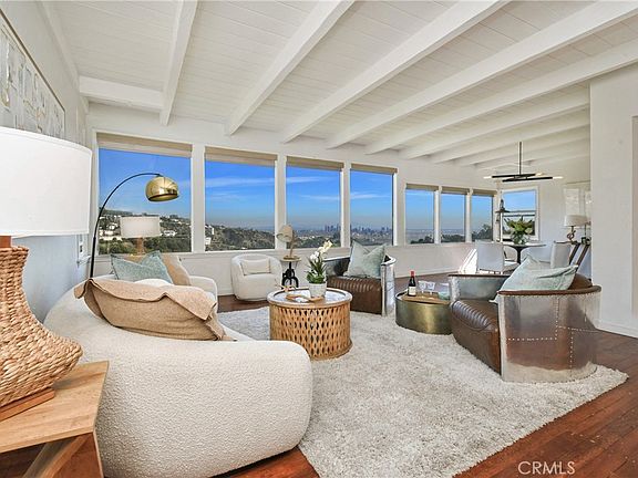 This private Spanish Villa in Laurel Canyon, situated within the desirable Wonderland School District, boasts breathtaking, unobstructed views of downtown and the surrounding canyon. Flooded with natural light, this secluded home offers expansive panoramic vistas from nearly every room, including the vast rooftop deck complete with a wet bar – ideal for both unwinding and hosting gatherings. Step through the gated courtyard and into the open-plan main floor, where you'll find hardwood floors, post and beam ceilings, and continuous wall-to-wall windows that perfectly frame the stunning scenery. The kitchen features stainless steel appliances and a charming built-in breakfast nook, providing direct access to either the courtyard or the rooftop, perfect for enjoying your morning coffee or dining al fresco. A powder room and the primary bedroom suite, which includes an en-suite bathroom and generous closet space, are also conveniently located on this level. The second level, accessible via a direct entry and a separate private entrance, is a self-contained space designed for entertainment. It features a built-in bar, a comfortable lounge area, and a second bedroom with its own en-suite bathroom. The third bedroom is situated on the bottom floor and includes a bonus room, offering versatile space that could serve as a home office, gym, or creative studio. This lower level also has a powder room and a separate entrance. For parking convenience, the property includes a two-car attached garage, a driveway with space for two additional vehicles, and further off-street parking. This tranquil retreat in the hills is also just moments away from the Canyon Country Store and its dining options, as well as Hollywood, the Sunset Strip, West Hollywood, Studio City, and more.