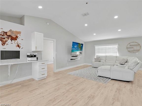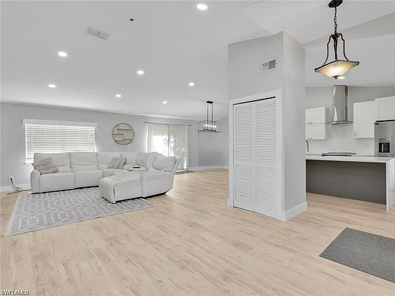 Modern Comfort Meets Prime San Carlos Park Location. Welcome home to this beautifully updated 3-bedroom, 2-bath single-family home with a spacious 2-car garage located in the highly sought- after San Carlos Park area of Fort Myers. Offering modern finishes, an open concept layout, and a newer roof (installed in 2023), this home is move-in ready and designed for today’s lifestyle. Step inside to an expansive great room that seamlessly connects the living, dining, and kitchen spaces — perfect for entertaining or relaxing with family. The light wood-tone flooring flows throughout, complementing the soft neutral palette and abundant natural light. The updated kitchen boasts white shaker cabinets, quartz countertops, stainless steel appliances, tile backsplash, and a custom range hood — giving the heart of the home a sleek, modern feel. The primary suite features its own stylish vanity area with granite countertops, upgraded lighting, and private access to the bedroom and ensuite bath. Two additional bedrooms provide flexibility for guests, a home office, or a nursery. The guest bathroom has been tastefully updated with a glass-top vanity and neutral tile finishes. Outside, you will find a welcoming front entry with low-maintenance landscaping and a walkway leading to a charming covered entryway — the perfect spot to add your personal touch. The backyard offers the perfect space to create your own outdoor oasis. The home is located between US 41 and I-75 and offers easy access to shopping, restaurants, SW Florida International Airport and the outstanding beaches that Southwest Florida is known for.
