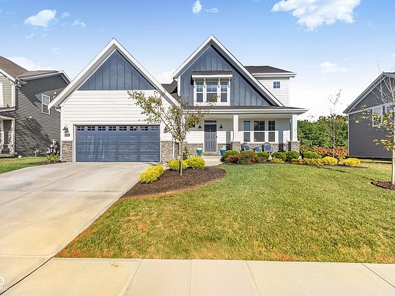Welcome to the stunning 5-bedroom, 4.5-bath home in the desirable Villages at Brookside community. The main floor features a two-story great room, open dining area, and gourmet kitchen with modern finishes. Enjoy a spacious primary suite with a spa-like bath and walk-in closet, plus a second bedroom with its own full bath-perfect for guests or multigenerational living. Upstairs offers two bedrooms, a full bath, and an open loft for extra living space. The finished basement includes a wet bar, large recreational room, workout/flex room, bedroom, and full bath-ideal for entertaining. Relax on the large patio with a gas fire pit. Take advantage of ample storage throughout the house and an oversized two-car garage. Close to the developing McCordsville downtown, Geist Reservoir, and Fishers shopping and dining, with community pool and playground access. Don't miss your chance to own this exceptional home in one of McCordsville's most desirable neighborhoods.