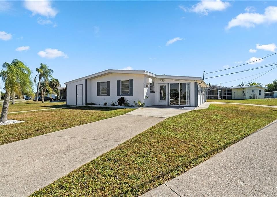 Welcome to this well-loved North Port home on city water and sewer — a true gem that’s been cared for and maintained in great condition! Featuring a 2023 roof and newer A/C, this home is ready to move right in and enjoy. Step inside to find a comfortable 2-bedroom, 2-bath split floor plan that offers both privacy and flow. The spacious great room is filled with natural light from its many windows, creating a bright and welcoming atmosphere. The kitchen features white cabinetry and plenty of light, along with a cozy dinette area perfect for casual meals. Enjoy the large enclosed Florida room, ideal for relaxing or entertaining, and step out to the outdoor patio where you can sunbathe, grill, or unwind in the Florida breeze. A detached garage with electrical provides great flexibility for parking, storage, or even a workshop. Situated on a corner lot with a sidewalk, this home offers great curb appeal and convenience. Located just minutes from Warm Mineral Springs, the brand-new Costco, and Wellen Park, you’ll have shopping, dining, and recreation right at your fingertips. This charming home truly captures the best of North Port living — comfort, location, and value all in one!