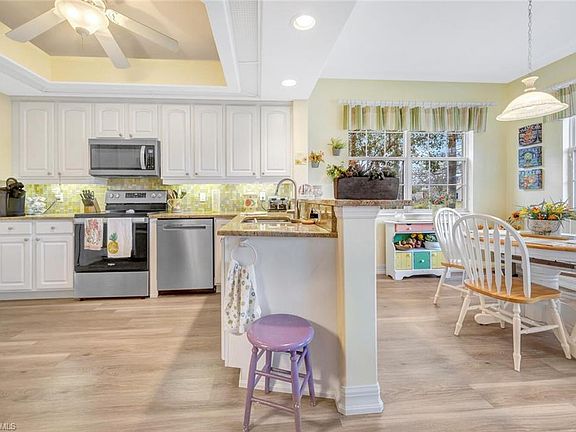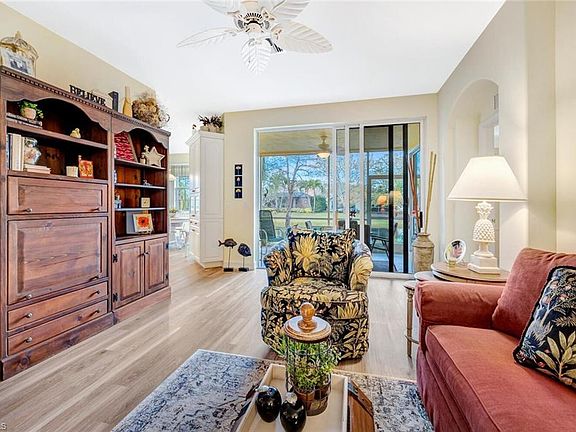 Discover your dream home in the highly sought-after Nottingham at Pebblebrooke Lakes in North Naples. This pristine first-floor carriage home, overlooks the water where you can enjoy your coffee or cocktail while watching the multitude of various birds visiting the lake. This spacious home boasts 3 bedrooms, 2 bathrooms, and 1,800 sq. ft. of living space with an enourmous amount of closet space and storage. Step into an open, light-filled layout with high ceilings, laminate flooring throughout, and a beautifully remodeled kitchen with an eat-in area, ideal for daily enjoyment or entertaining. A/C and Water Heater both 2021. This home’s thoughtful design caters to comfort and convenience with wide hallways and doors, ample storage, and a 2-car garage with plenty of room for additional shelving. Unique to Pebblebrooke Lakes, the carriage homes provide a remarkable blend of roominess and functionality. Plus, with in-wall pest control and a water softener, your comfort is always a priority. Living in Nottingham comes with the added luxury of an exclusive pool for residents, while Pebblebrooke Lakes offers a wealth of amenities including additional pools, tennis courts, a fitness center, and a spacious party room. This property not only provides a beautiful living space but also an enriched lifestyle with activities and relaxation right at your doorstep. For your convenience, Pebblebrooke has 3 separate owner entrances making access to Immokalee Road and Collier Blvd a breeze. There is even a gated walkway that leads from Pebblebrooke right into Oakridge Middle School.