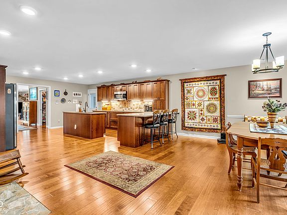 This single-family residence in Boone County (Zionsville schools) presents an attractive property in great condition, ready to welcome your family. The heart of this home lies in its thoughtfully designed kitchen, where culinary aspirations come to life, featuring a large kitchen island and a kitchen peninsula providing ample space for preparation and casual dining. Soft close shaker cabinets offer generous storage while the beautiful countertops provide a durable and elegant surface, beautifully complemented by a stylish backsplash. A stovetop is ready for creating any meal, and a kitchen bar creates a welcoming space for gathering and conversation. The expansive pantry offers even more storage. The wood stove offers a secondary heat source. Built-in shelves offer a place to showcase treasured belongings and add character to the space. The primary bedroom offers a private retreat, complete with an ensuite bathroom for added convenience. The bathroom is appointed with a tiled shower and double vanity providing both style and functionality. A private entrance to the screened gazebo is an added luxury. A large walk-in closet provides generous storage for clothing and accessories. This property offers a collection of features designed to enhance everyday living, including a screened gazebo, a laundry room, a patio, an outdoor dining area and a porch. With three full bathrooms and three bedrooms, this 2556 square foot home, constructed in 1978 on a sprawling 9.84 acre lot, provides a comfortable and spacious layout for its residents including a 40X60 pole barn with electricity and climate controlled areas and a stocked pond. Embrace the tranquility of rural living in this exceptional single-family residence.