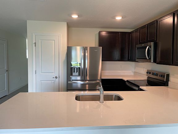 Welcome to this stunning 3-bedroom, 2.5-bath, two-story townhouse in the brand-new community of Twisted Oaks in Wildwood. Designed with modern convenience and style, this home features solid surface counters throughout and elegant tile flooring in the main living areas and bathrooms, creating a sleek, low-maintenance backdrop for everyday living.