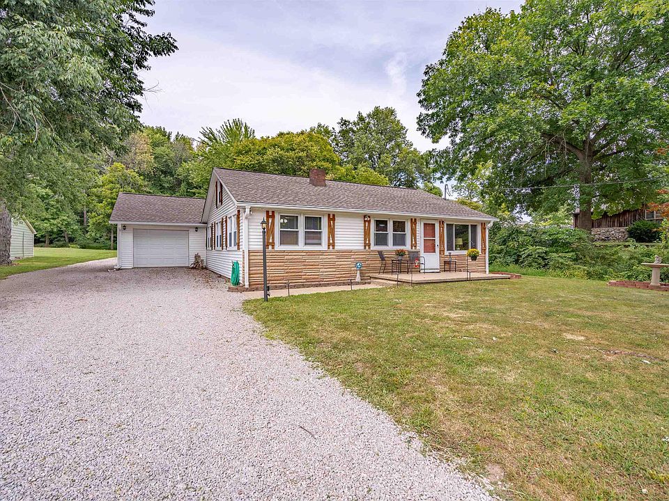 Welcome to this charming 3-bed, 2-bath home that truly offers more than meets the eye. Nestled on a half-acre lot, this property boasts over 1,800 square feet of finished living space, an attached garage, and a detached 2-car garage with a new roof. As you step inside, you'll be greeted by a cozy front living room that flows seamlessly into a quaint kitchen featuring stainless steel appliances, perfect for all your culinary needs. Adjacent to the kitchen, you'll find a convenient dining room, ideal for family meals. All three bedrooms are conveniently located on the main floor, providing easy access and comfort. Off the dining room, the spacious family room with vaulted ceilings invites you to relax and unwind, with direct access to the backyard. And yes, the pool table is included! Both bathrooms have been tastefully updated, adding modern touches to this charming home. Additionally, the unfinished attic and basement offer ample storage space and potential for future expansion. Outside, you'll discover a gazebo with electric, perfect for outdoor gatherings and a detached garage ready to meet all your storage or workshop needs. This home is an estate sale and is being sold as is, offering a fantastic opportunity for those looking to add their personal touch. Don't miss out on this hidden gem!
