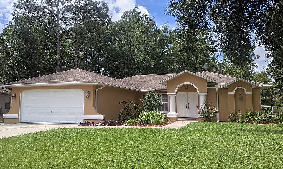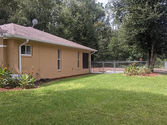 Home is ready for new owner to move in. This home is located in the rapidly growing Citrus Springs neighborhood. With close proximity to the Withlacoochee bike trails and highly desirable Rainbow River. Close access to highway 41. This Adorable 3 bedroom, 2 bath, 2 car garage home is located on a corner wooded lot. Enter this open floor plan with vaulted ceiling, tile floors and pocketing sliders that open to the over-sized lanai. Kitchen has lots of counter space plus dining area has a view of covered porch and wooded backyard. Master suite has wood laminate floors with a walk-in closet, dual sinks and walk-in tiled shower. Outside has brick paver walkway for outdoor entertainment and a fenced backyard. Plantation shutters in great room, inside laundry with tub. New Septic 2018, New AC 2019. New outside paint 2021, newer appliances, and Leaf filter gutter protection. The home is also located just north of Citrus Ridge Elementary and Citrus Springs Middle School. The Citrus Springs community has a golf course, tennis court, and a playground.
