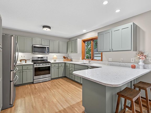 Welcome to 839 Arbogast Street in the heart of Shoreview and the award-winning Mounds View School District! This charming two-story offers 4 bedrooms and 3 full baths, including a main floor bedroom plus 3 bedrooms upstairs. Original hardwood floors have been beautifully resanded, and the renovated kitchen features stainless steel appliances, quartz countertops, and professionally painted cabinets. The finished basement includes a spacious family room with new carpet and fresh paint. Enjoy the fully fenced backyard with maintenance-free composite decking, large cement patio, and string lighting for the perfect ambiance. The oversized two-car garage provides ample room for vehicles, storage, or toys. A move-in ready home with updates, space, and location!
