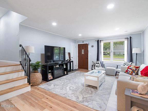 This 3-bedroom (plus possible 4th) sits on a 100x100 corner lot across from a quiet, tree-lined park—such a peaceful spot, yet just minutes to downtown Red Bank and the Navesink River. The home has been recently updated with new flooring, fresh half bath, and a sun-filled den that opens to the backyard. Upstairs, refinished hardwood floors run through all three bedrooms, alongside a full bath with soaking tub and stall shower. The kitchen offers bright white cabinetry with smart pull-out storage and easy-to-maintain black counters. With new trim and doors throughout, this home blends comfort with potential. A great chance to make it truly yours in a location you'll love.