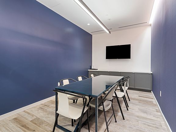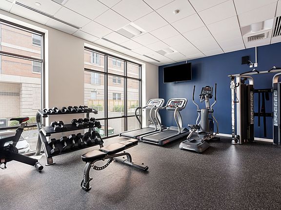 White quartz countertopsCommon outdoor spaceStainless steel appliancesPrivate conference roomFitness centerFloor-to-ceiling windows