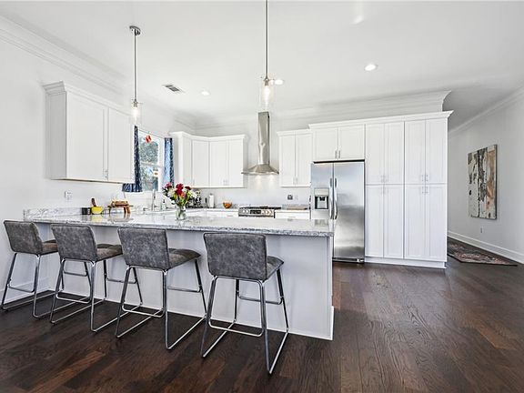 This one is for those savvy buyers who are ready to become a homeowner and want move-in ready, budget friendly, affordable insurance living without compromising style and space. 839 Belleville offers EVERYTHING you could need and want in Historic Algiers Point. A sweet front porch greets you and makes a lovely spot to sit and chat with the friendly neighbors. Through the sunny and welcoming yellow door you will find OPEN, AIRY living and dining areas that are flooded with beautiful natural light. The living area is elevated with tray ceilings and ample space for all your furniture. The kitchen is a SHOWSTOPPER- it's what you would expect to find in a luxury property- marble countertops, gas range/oven, stainless appliances, and SO MUCH CABINETRY. Do you enjoy casual dining? Counter stools at the island offer the perfect place for relaxed dining. Don't fret though this home still has space for a dining table for when you want to host a sit down dinner. The layout of this home is PHENOMENAL for entertaining! A wide side hall offers fabulous wall space to display your art, and hang plants- there's even more sunlight gracing this area. Two bedrooms off to the side give separation and privacy from the glorious primary suite. Speaking of which, the primary will leave you oohing and aahing! Bring all your bedroom furniture, you will have the space for it here, and even Carrie Bradshaw would approve of the primary closet! The ensuite bath is magazine-worthy with posh finishings, a soaking tub, and a free-standing shower. Step out back to the sizable backyard and start planning how to personalize to suit your lifestyle! There's, even more, to love here: Ample storage space, Off-street parking, X flood zone with assumable flood insurance, and it's under termite contract. Walk to all this idyllic neighborhood has to offer, enjoy the festive bridge lights, and catch the fireworks over the river! Don't wait to see this beauty- schedule a tour today!