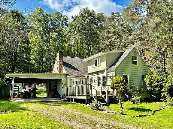 COZY HOME WITH GREAT YARD! This home sets back off the road on a great country lot! The first floor has a living room with large picture window and wood paneled wall. Kitchen is open to the dining area with large picture window to enjoy the beautiful back yard view and a breakfast bar. Laminate flooring and appliances included are refrigerator, dishwasher, gas stove, microwave, freezer and gas dryer in "As Is" condition.