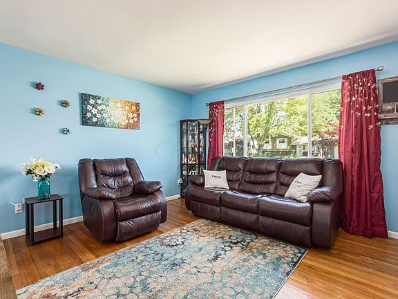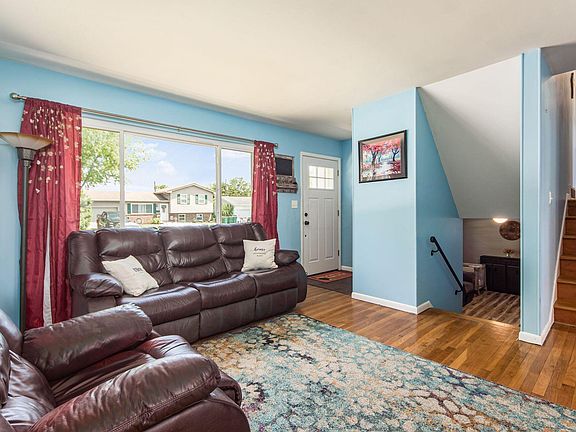 3BR, 1.5BA split level -- living room with large, picture window -- eat-in kitchen features white cabinets, stainless steel dishwasher and microwave, subway tile backsplash and access to fenced-in rear yard -- lower level rec room with corner, fireplace and half bathroom -- patio -- 1-car, attached garage.