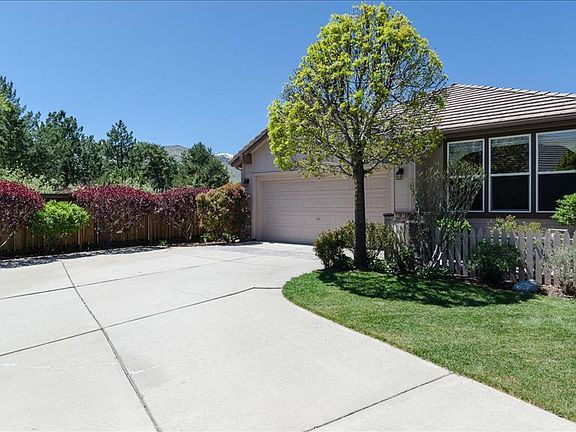 RARE FIND! Beautifully upgraded and meticulously maintained 2 bed,2 bath home in the desirable Caughlin Glen neighborhood! Sitting on a secluded flag lot with views of the mountains, pond and park, this handsomely landscaped home is completely turn-key with immaculate attention to detail throughout. Kitchen is equipped with newer energy efficient GE appliances, breakfast bar, tiled backsplash, cast iron sink and a large pantry. Open design living and dining area is perfect for entertaining- dual overhead fans in living area along with 15 feet of maple cabinetry and bookshelves with recess for couch, Napoleon brown-enameled gas-fired cast iron stove with automatic fan on raised heath with mantle, honey-combed window shades and window valences. Spacious dining area with high/low cabinetry and chair rail. Master bedroom comes with full length dressing mirror, light blocking honey-combed window shades & window valence. Master bath comes with double sink, 34" height raised-panel maple cabinetry, glass enclosed shower and tiled mirror surrounds. Guest room has custom window valence drapery and including two matching throw pillows. Full second bath also with 34" height raised panel maple cabinetry and a tub/shower with glass enclosure. Fully finished garage is with insulated double garage door, built-in workbench w/overhead cabinets, custom storage cabinets and shelving. Newer energy efficient gas-fired hot water heater and gas furnace. Backyard includes Belgard paver patio (180sf) with southern exposure, gas line stubbed to inside of exterior wall at the patio for future hook-up for barbecue. Easy access to miles of Caughlin Ranch paved walking trails. Short walk to schools (Roy Gomm, Swope) shopping (Mayberry Landing, Caughlin Crossing, Plum Tree Plaza) and transportation. Come check this one out today! DONT MISS THE VIRTUAL TOUR!