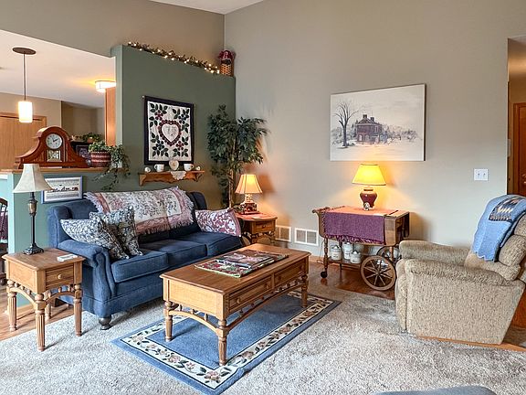 Immaculate Sycamore home features BRAND NEW Furnace with humidifier, AC, and Smart thermostat all new in 2023. New vinyl planking in kitchen. New, in 2017, Anderson windows throughout and Andersen sliding glass doors. Elegant living room showcasing gas fireplace, brand new area rug, neutral colors, vaulted ceiling with display ledge. Updated kitchen pendant lighting, pantry, breakfast bar, oak cabinetry, Hunter ceiling-light fan and all newer appliances. Quality carpet in all bedrooms, stairway and living room. Master Suite features 2 closets and wide shower. Second private entrance is located in the rear. Unit is light, bright, spotless and move in ready. Close to shopping and downtown Sycamore. Quick access to NIU. HIGHEST AND BEST DUE BY 10:00 Monday, August 7th.