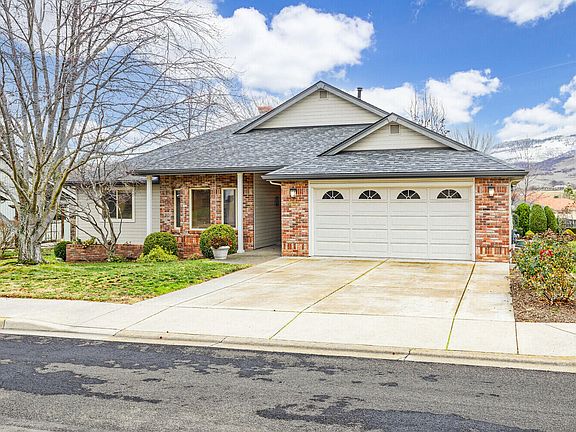 Enter into this single level in Oak Knoll Meadows and you'll find a beautiful, well cared for home with pride of ownership. The home was tastefully remodeled in 2012 with the addition of wood floors, carpet and updates to the kitchen and bathrooms. The living room boasts vaulted ceilings and a gas fireplace with a floor to ceiling natural stone surround. Views of the Cascades can be enjoyed from many parts of the home. There is both a more formal dining area off the living room plus a casual eating area off the kitchen with tons of built-in cabinetry. Tile backsplash brings the spaces together. On the opposite wing, you'll find the three bedrooms, one of which is used as a study and features beautiful glass paned solid wood doors. The primary suite is oversized and has beautiful views plus easy access to the back deck. There is a gracious covered eating area on the deck allowing you to take in the beautiful views that overlook the paths of the common space and the mountains beyond!