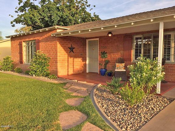 1940 Mid-Century red brick featured on 2016 Coronado Home Tour. All the right upgrades preserve original charm-This is not a flip. Bright flowing 3bd, 2bath w/updated baths, fresh paint, charming eat-in kitchen w/gas stove, & large dining room. Step out into your English garden backyard under sparkling bistro lights and take a dip in a refreshing pool-Rare for the neighborhood! You will long to entertain here! Newer A/C, updated travertine flooring, cabinets, appliances, wood shutters, newer electrical service & blown in insulation, updated roof, updated irrigation system, & more! Enjoy urban living within the close-knit Coronado community minutes from some of the best AZ restaurants, shopping, downtown, freeways, airport & much more! Absolute must see!