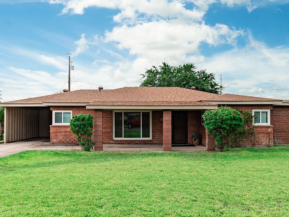 Welcome to this beautiful 3-bedroom, 2-bathroom home situated on almost a quarter-acre lot! This home is filled with upgrades throughout, including a new kitchen with a stainless steel appliance package, an updated bathroom, and luxury vinyl plank flooring in the dining area, kitchen, and primary bedroom. The primary suite offers two closets, one featuring a custom closet system for added convenience and organization. A spacious laundry room and covered carport provide practicality and extra storage options. Step outside to the true highlight of this home an expansive backyard retreat with a massive covered patio complete with ceiling fans, mature trees, and lush landscaping. There's ample room to relax or entertain, making this the perfect outdoor living space. This move-in-ready home combines modern updates, thoughtful details, and a stunning yard perfect for comfortable living and entertaining year-round!