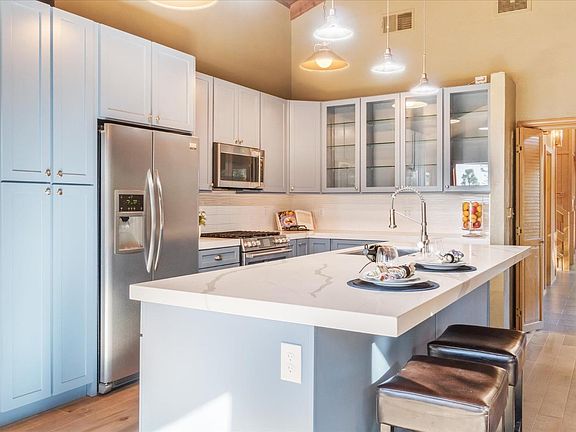 - Beamed Ceilings, Wet Bar, Breakfast Bar, Open Beams/Beamed Ceailings, Breakfast Area, Cathedral Ceiling(s), Dining Area, Eat-in Kitchen, Family/Dining Room, Gourmet Kitchen, Kitchen Island, Living/Dining Room, Pantry, Quartz Counters, Storage, Utility Room, Workshop