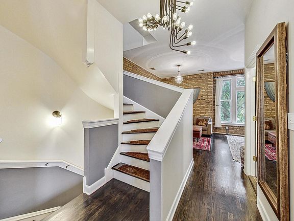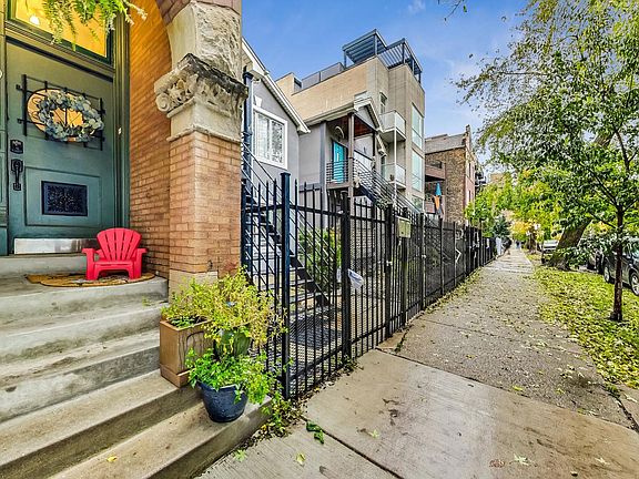 Nestled in the heart of the East Village, this stylish 2+ bedroom, 2.5 bath penthouse duplex offers urban living at its finest. Set on a serene tree-lined street, this home exudes charm and sophistication. As you step inside the private entrance, expect to be impressed by the soaring 12' ceilings and the flood of natural light pouring in through unobstructed windows from the corner lot. The extra-wide floor plan provides flexibility, allowing for various living arrangements and abundant remote work options, catering to the demands of modern lifestyles. The updated kitchen, complete with 42" walnut stained cabinetry, newer stainless-steel appliances, quartz countertops, and a movable island, opens directly to the dining room. Ascend to the second floor, where two extra-large bedrooms await, including a primary suite featuring a huge picture window with treetop views, organized closets, and a renovated en-suite bath with an oversized shower and double vanity. Charming details such as exposed brick, updated lighting, big skylight, and hardwood floors throughout add character to this home. Enjoy the conveniences of in-unit laundry, garage parking, and a well run association. Perfectly situated, this residence offers great proximity to transit options, as well as the lively happenings on Division & Chicago Ave, ensuring a vibrant city lifestyle. Seize the opportunity to call this East Village gem your new home sweet home!