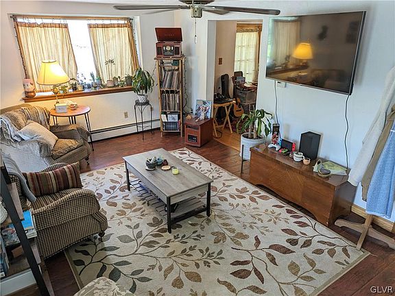 Own a piece of history! This charming stone farmhouse built in 1876 retains its old world appeal with modern touches. Hardwood floors throughout. Enjoy the sunlight that streams throughout the home. 12" deep window sills. The living room is large and leads to the side patio. The dining room featuring open wood beams is adjacent to the kitchen. Enjoy the back porch and yard that leads into the woods next to the land owned by the water company (see map in the pictures). Plenty of parking room in the driveway. Shed and all appliances are included. Oil heat with summer/winter hookup. The house is close to route 33 and minutes away from the Appalachian Trail, shopping, wineries, restaurants and entertainment.