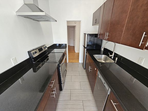 Galley Kitchen has all Stainless appliances incl fridge, stove, dishwasher, plus real wood cabinetry, black granite countertops, and Separate Dining Area.
