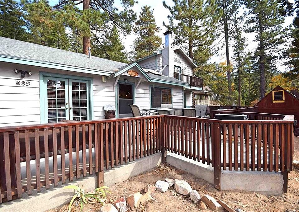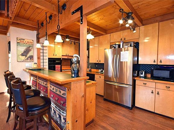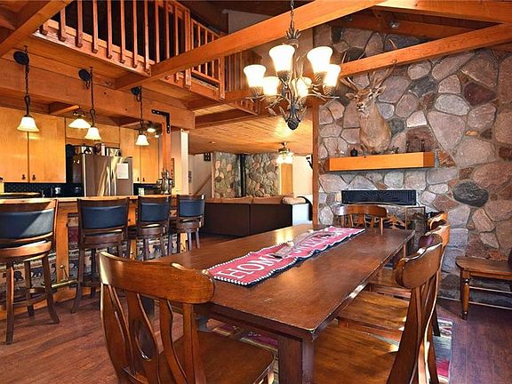 Excellent Moonridge location near the Golf Course and Bear Mountain. Just the right mix between classic cabin and modern comfort. Fully furnished 3 bedroom and 3 baths with two suites. Primary bedroom upstairs with large bathroom with jetted tub, vaulted ceilings and walk in closet. Spacious living room with wood ceilings and wood burning stove with river rock for those cold winter mornings. Kitchen with breakfast bar opens into a dining area next to a huge real rock fireplace. Central forced air heating, Laundry closet, and lots of storage. Front and back patios and a small porch off the Primary bedroom with treetop views. Great mountain setting and fully fenced yard. Plenty of off street parking as well. Would make a great full time or second home and/or vacation rental property.