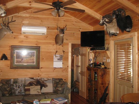 PRICE REDUCED! Turnkey family compound, acres to roam, and lots of wildlife to enjoy. Features include a 600 sq ft 2 bedroom plus sleeping loft, 2 bath park model log cabin, brand new in 2009; includes all major appliances and fully furnished. Screened porch and covered porch both 10' x 16', covered carport, well and septic systems. Outbuildings, picnic shelter, and covered lighted skinning shelter. Open field with long view to the creek, beaver impoundment, a waterfowl attractor, wooded acres, road system. Rural, private, quiet; deer and turkey almost on the front porch, ducks and geese on the pond. Gated entrance with gravel all-weather entrance road. A must see. Shown by appointment only.