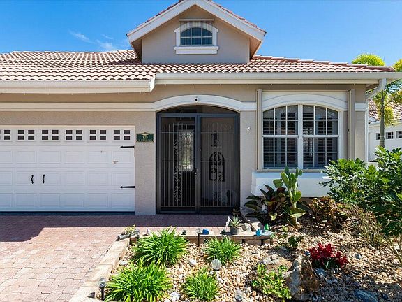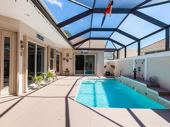 Beautiful 3Bd/3Ba COURTYARD POOL Home! Unique layout features main living area with large master suite and guest bedroom and completely separate guest suite. Both living areas separated by a screened central patio with a recently refinished heated pool. Main area features a completely renovated kitchen with newer cabinets, countertops and S/S appliances. Upgraded LVP flooring, new light fixtures and plantation shutters. Freshly painted interior and exterior. Master bedroom has completely remodeled ensuite bath with garden tub, separate shower, dual vanities and a walk-in closet. Screened front entrance with new glass pane front door. Complete Accordion Shutters. Hard coat epoxy garage floor. Upgraded landscaping and retaining wall. Clean, well maintained and move in ready!
