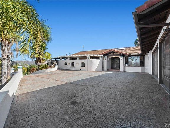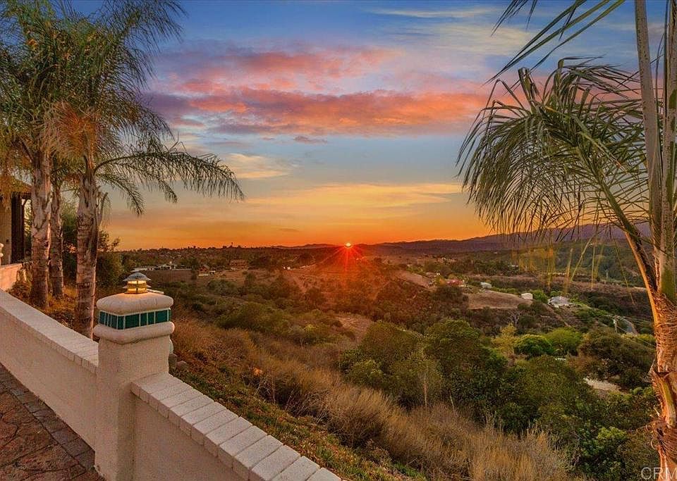 Stunning panoramic views from this 2694 sf single-story Fallbrook home. Full of character and space with 3 large bedrooms and a 4th with closet, could serve as an office/hobby room. All nestled on a serene 1.43-acre lot yet 3/4 mile from Mission Road. The home offers the perfect balance of rural tranquility and convenience—with breathtaking views visible from every window. The south wing spralls with the kitchen in the center surrounded by a casual family sitting room with fireplace, opening to a characteristic 80's style bar. The formal dining and living room expand with classic vaulted beamed ceilings— architecturally designed for both comfort and entertainment. Wall to ceiling is coated with fresh paint inside and out inviting sleek and clean lines. The property includes a romantic gazebo, perfect for enjoying stunning sunsets and watching local wildlife like eagles and hawks soar above or telescoping the night sky. The lot provides privacy and space while the three-car garage fits all your material luxuries including a 4th additional storage for RV, vehicles, toys or hobbies. Practical features include two water heaters, two furnaces, and pleasant neighbors (always a great find), making this home as functional and friendly as it is picturesque. Whether you're seeking a peaceful retreat this reasonably priced gem offers it all. Come see and feel it today!