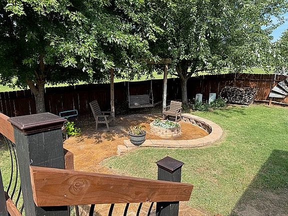 Fenced backyard with patio & fire pit