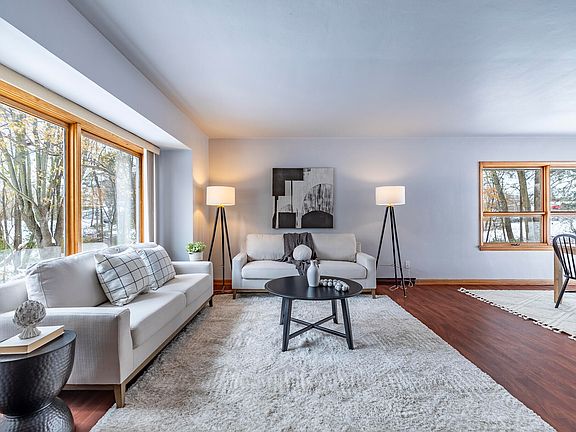 Quiet wooded lotSpacious outdoor deckUnique quad-level designLarge picture windowsAdditional versatile space