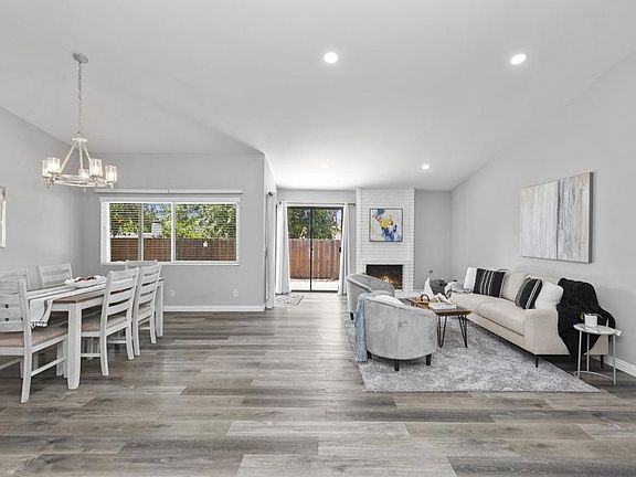 An Adorable spacious 3 bed 2 bath home over 1500 sq foot with soaring vaulted ceilings, canned lighting, ceiling fans, luxury vinyl wood flooring throughout other than 2 bedrooms. Easy flowing single level floor plan with open living and dining space adorned with a cozy fireplace. The two car garage is lined with cabinets, and easy access washer dryer hookups. Two miles from Main St, groceries, gas, shopping, restaurants and activities. Fallbrook blooms with community street faires, Christmas parades, theatre and business community events. An easy 20 minute drive to Escondido or Temecula for additional services and events. A great investment option or enjoy living the life of the Fallbrook community. A must see for this area!