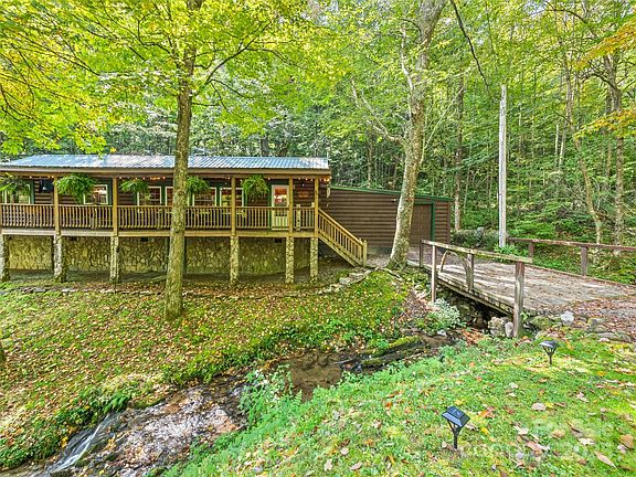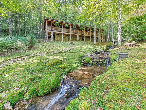 Escape to this private, gated creekside log cabin bordering Blue Ridge Parkway land—an ideal second home or vacation rental. Enjoy the soothing sounds of a bold, trout-stocked stream just steps from your door, with elk and other wildlife roaming freely through the area. Inside, you'll find a kitchen with stainless steel appliances and dual fireplaces—one in the cozy living room and one in the peaceful primary suite Relax year-round on 621 sq. ft. of covered porches, soak in the hot tub overlooking the creek, or gather around the outdoor fire pit. Includes a 23’x16’ workshop/storage for ATVs, a high weight capacity bridge for easy access, and sits at nearly 5,000 ft elevation for cool summer temps and unmatched serenity.