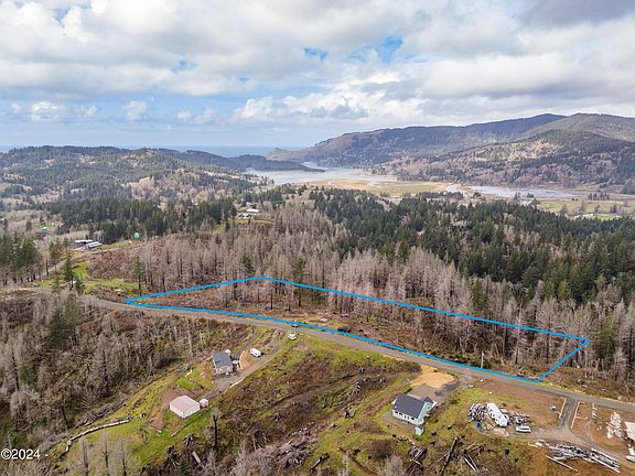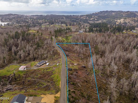 5.76 acre Mountain view homesite in Highland Estates, previous home was lost in the Otis fires. Structure has been removed, garage and shed concrete foundation on property ready for the next owner to rebuild. Electricity at the street, no meter. Well and septic on site. Septic inspection on file. Buyer to perform own due diligence regarding well and septic on property.