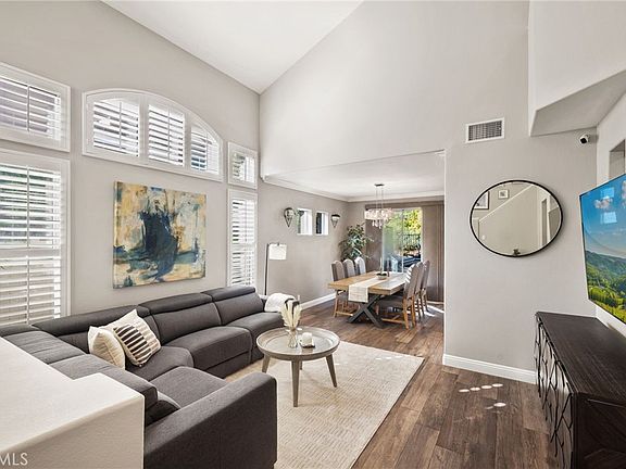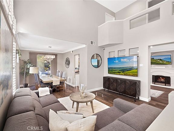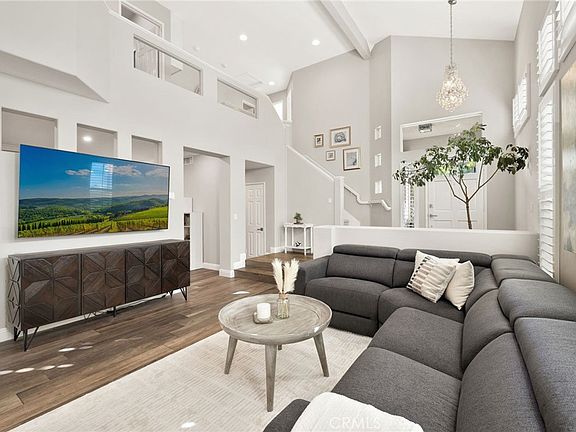 Located in Anaheim Hills’ coveted dual cul-de-sac community of Vintage Place, this 4 bed 2.5 bath home blends timeless elegance with modern upgrades. Upon entry, you'll find cathedral ceilings, abundance of natural light, and designer touches including wooden shutters, chandeliers, and rich wide plank flooring. The kitchen features freshly painted cabinetry, granite counters, stainless steel smart appliances, farmhouse sink, and peninsula with bar seating. On the second level, the spacious primary retreat offers new luxury vinyl floors, dual walk-in closets and a fully remodeled spa-like bathroom featuring dual vanities with quartz counters and an expansive shower with dual rain heads, bench seating, and skylight. Three additional bedrooms include two generous guest rooms plus a versatile room with built-in desk and Murphy bed. Designed for entertaining, the updated private backyard boasts stone hardscape, artificial turf, new landscaping, up-lighting, and a built-in outdoor Summerset BBQ. Additional highlights include freshly painted exterior, water softening system, reverse osmosis drinking water, central HVAC plus split A/C in every bedroom, and a finished 2-car garage with epoxy floors and built-in storage. Ideally located near top-rated schools, parks, dining, and entertainment, this home offers the perfect blend of luxury, comfort, and convenience in one of Anaheim Hills’ most sought-after neighborhoods.