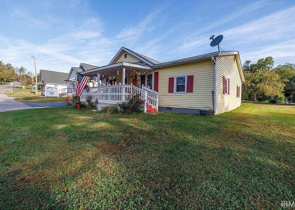 Cute 2 bedroom bungalow with detached garage. Nice sized living room, kitchen with appliances, dining area, laundry room, dressing area and covered front porch. News in last 2 years: 2023/ roof and siding, 2024/ washer/dryer, microwave and HVAC, 2025 electric range. Conveniently located to Bloomington's west side.