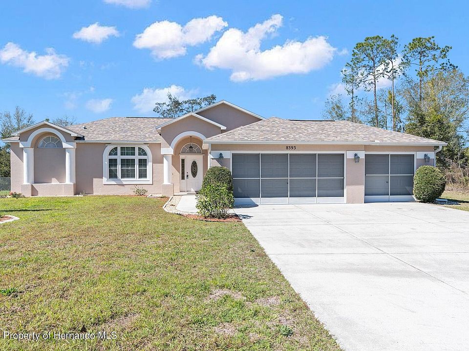 ** Seller will need to close on or before 4/20/24.** Welcome to your dream home located at 8393 Pinewood Ave in the charming town of Brooksville, FL. This beautiful property boasts 3 bedrooms, 2 bathrooms, and 1493 square feet of living space. As you pull into the driveway, you'll notice the spacious 3-car attached garage with screen doors, providing plenty of room for your vehicles and storage needs.