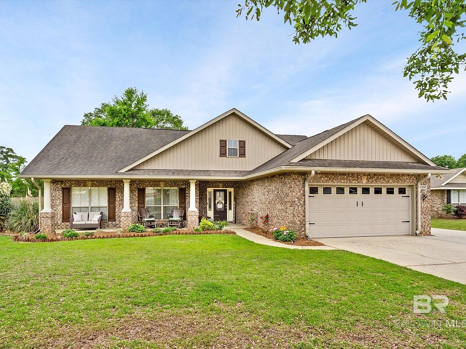 Welcome to Camellia Grove, conveniently located in Semmes near Schillinger Road. This beautiful home has an open floorplan with split bedrooms. It has 4 bedroom, 2 full bath, 9 ft. + high ceilings in the family room and a gas fire place. Kitchen has granite counter tops and plenty of cabinet space with additional cabinet storage space in the laundry room. Primary bedroom also has high ceilings with an oversized ensuite, walk-in closet, double vanity and separate shower / soaking tub. There is a two car garage with an extended driveway that leads to the additional 24 x 30 detached brick garage / workshop. This is a fabulous space that could also be used as a mancave, craft room or game room. Home also features fenced backyard with additional outdoor storage. There are sidewalks throughout the neighborhood.