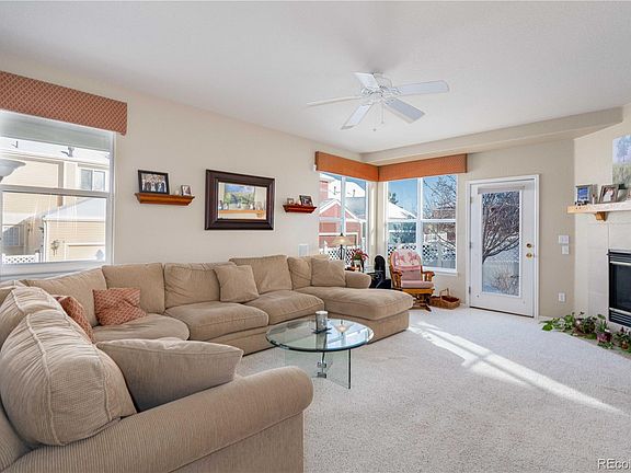 - Description: Corner Windows- Gas Log Fireplace-Built-In Speakers-Partial Front Range Views-Ceiling Fan-Carpeting