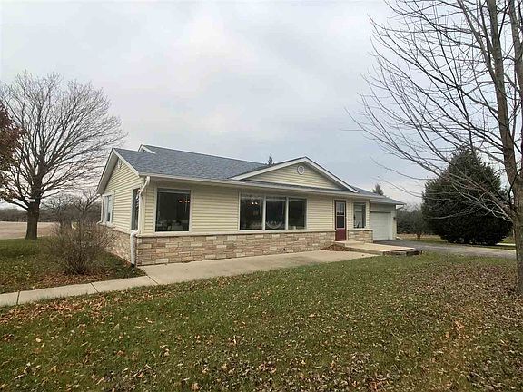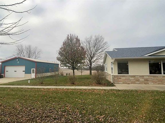 Open floor plan ranch home on 1 acre with country views. Open flow from living room into kitchen and formal dining room. Two rooms on the main floor. Large 1st floor laundry room off of the garage. 3rd bedroom in lower level with its own entrance from the garage. Lower level has full bathroom. 30x40 Cleary insulated outbuilding with 220 hook up, heater, concrete floor, 9,000 pound lift and floor drain. Attached 2.5 deep garage. New roof, facia, gutters and siding. Close to I-39.
