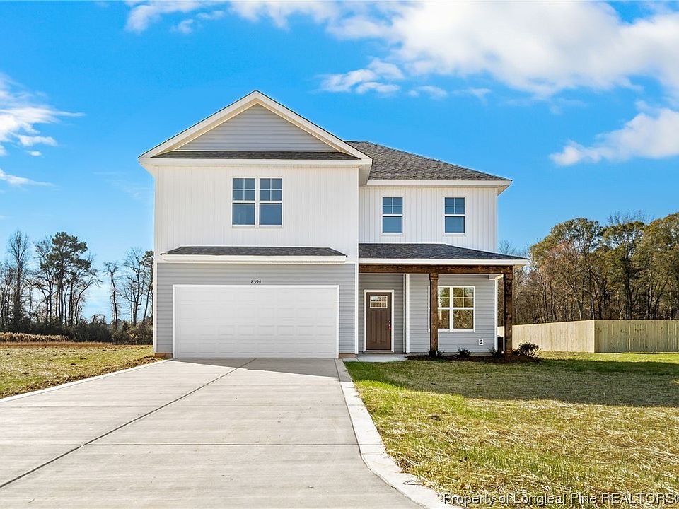 $2500 for buyer to buy down their points! Furnished! Almost a full acre of cleared land. This fantastic floor plan features 4 bedrooms, 2.5 baths. The downstairs has a formal dining room with upgraded trim features. The kitchen shows well with white shaker cabinets and granite countertops and a view into the living room with a beautiful fireplace feature. The upstairs boasts a large master bedroom, master bath with a double vanity, separate tub and shower and nice sized walk in closet. The other 3 bedrooms, full bathroom and laundry room are upstairs. This is a great functional house. There is a shared driveway per the NCDOT regulations to access the main road, but each client has their own separate driveway in front of their house.